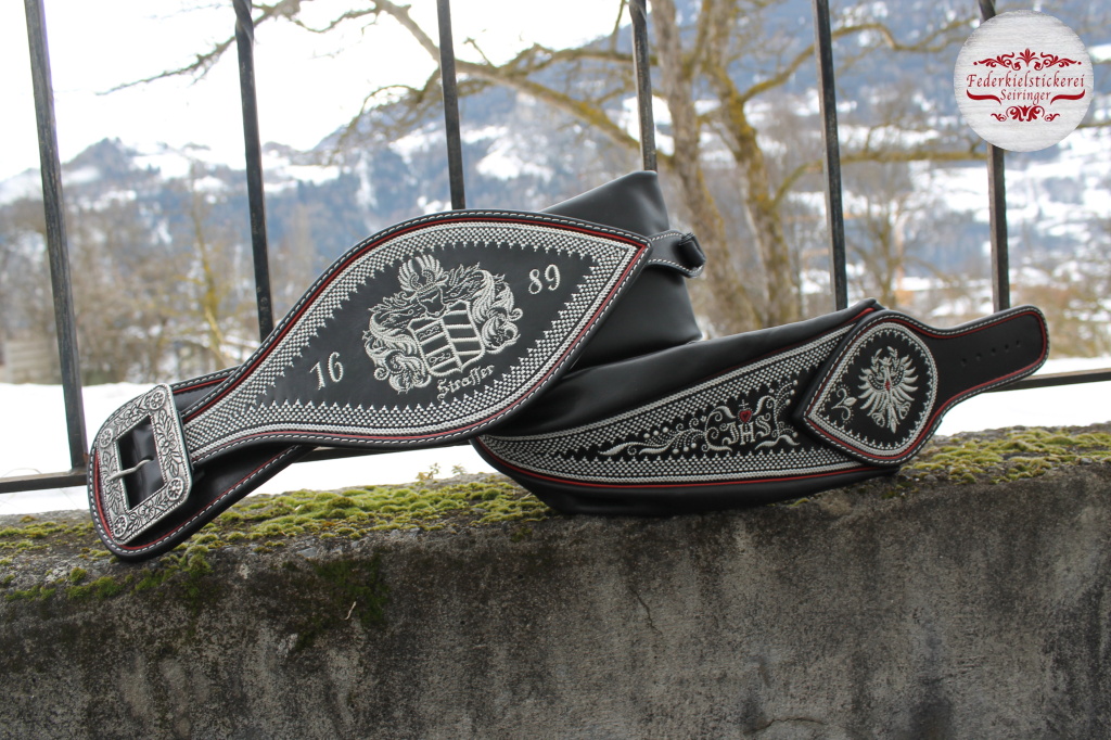 Mit Spruch im Schlauch und vom Kunden selbst entworfenes Motiv in der Lasche – ein Prachtstück!